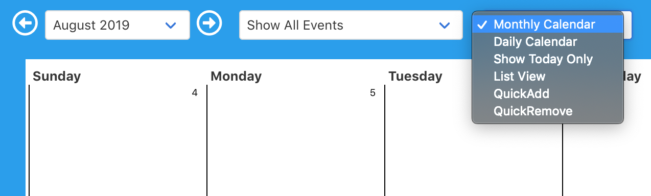 You may also select a Monthly, Daily, or Today display option for the calendar.